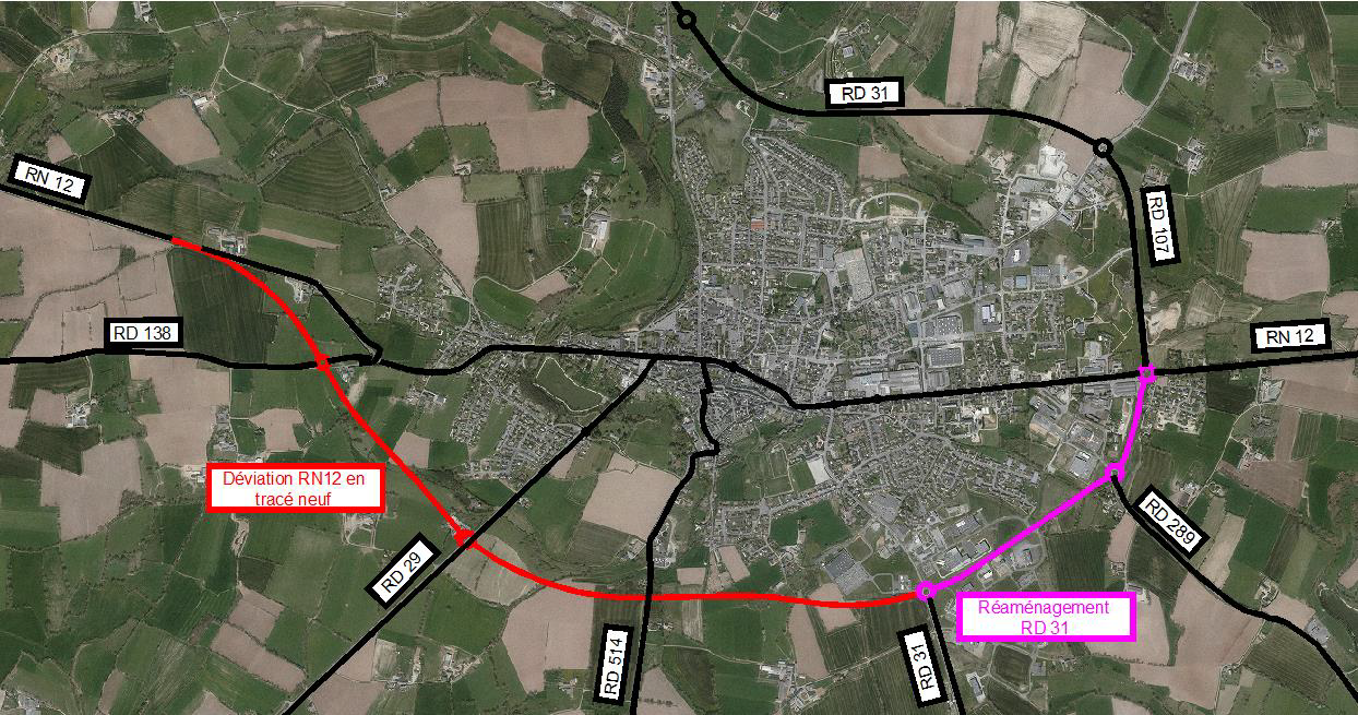 Les études d’opportunité d’itinéraire conduites sur la RN12 entre Alençon et Fougères à compter de 2010 ont abouti au choix d’un parti d’aménagement incluant comme prioritaire la déviation d’Ernée (décision ministérielle du 10 avril 2015).