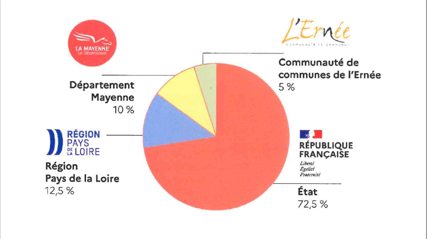 Cette déviation d’un montant de 43,5 M€ est financée par l’État, la région Pays de la Loire, le département de la Mayenne et la communauté de communes de l’Ernée selon la répartition ci-dessous. Ce financement a été acté le 16 novembre 2023 lors de la signature du protocole d’accord sur l’avenant du volet mobilités infrastructures de transport du Contrat de Plan État Région 2021-2027, en présence du Ministre des transports, du Préfet de région et de la Présidente de région. L’avenant a ensuite été signé le 27 juin 2024.