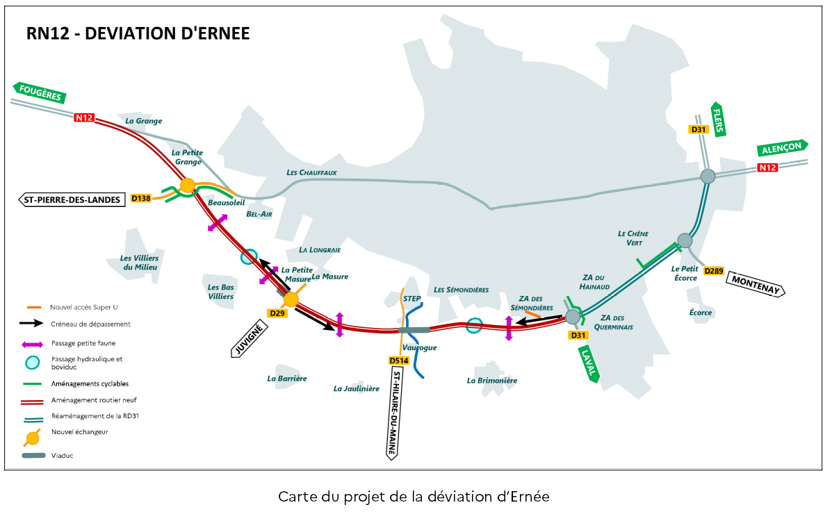 Le projet consiste en la création d’un contournement de la commune d’Ernée située entre la commune de Fougères et de Mayenne.